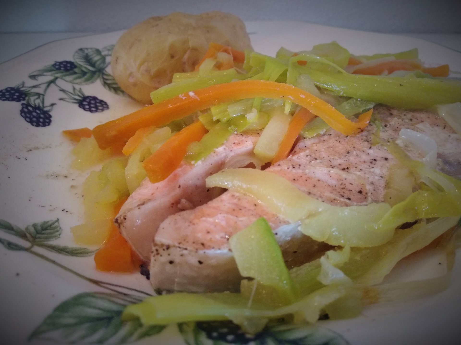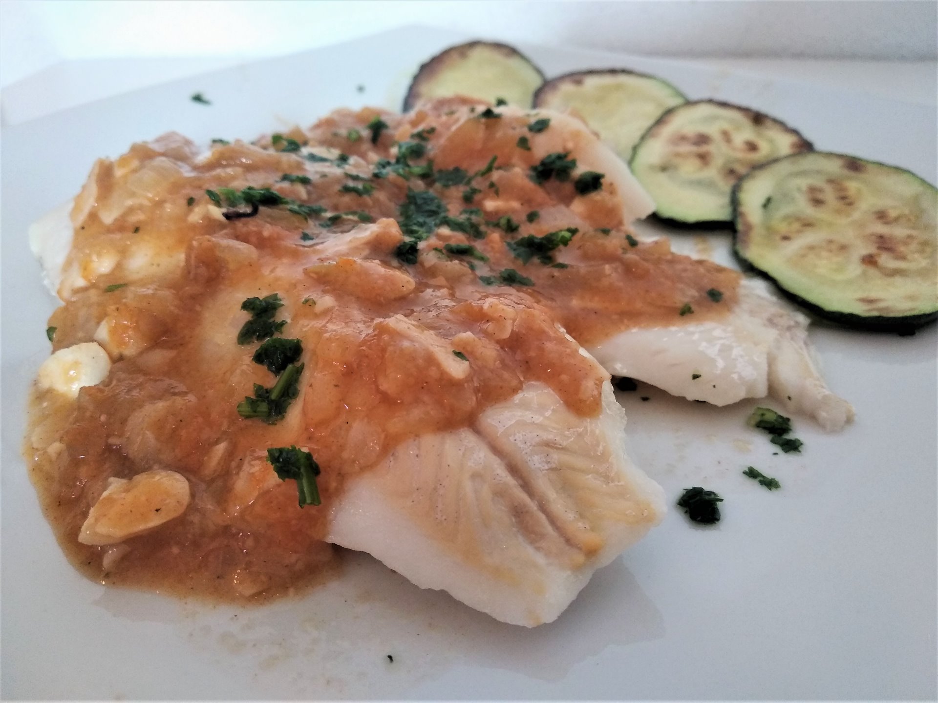 En una sarten grande, echamos la cebolla bien picada con una cucharada de aceite de oliva y dejamos que se poche bien. A continuación añadimos el diente de ajo (también picados) y en un par de minutos, y con cuidado de no dejar que los ajitos se quemen, añadimos el vino blanco.